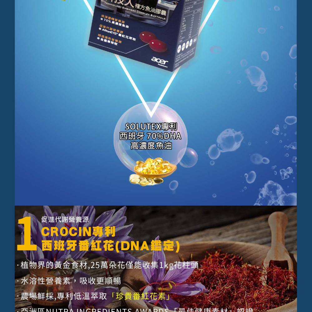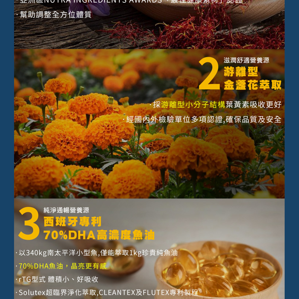 珍貴複方| 番紅花萃取、70%高濃度魚油、金盞花萃取