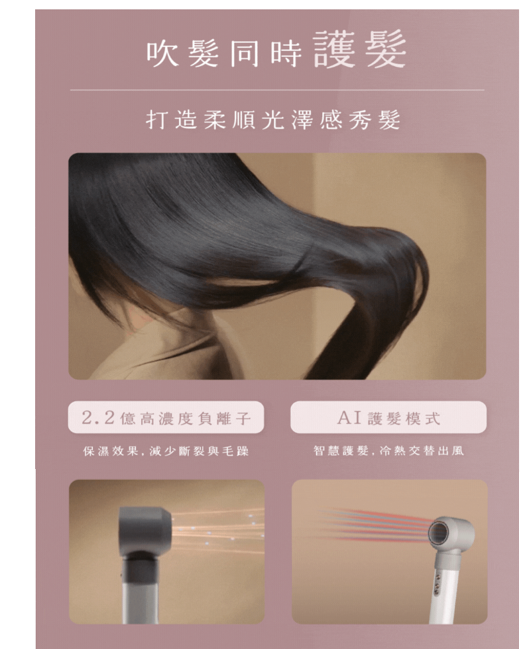 2.2億負離子呵護秀髮健康