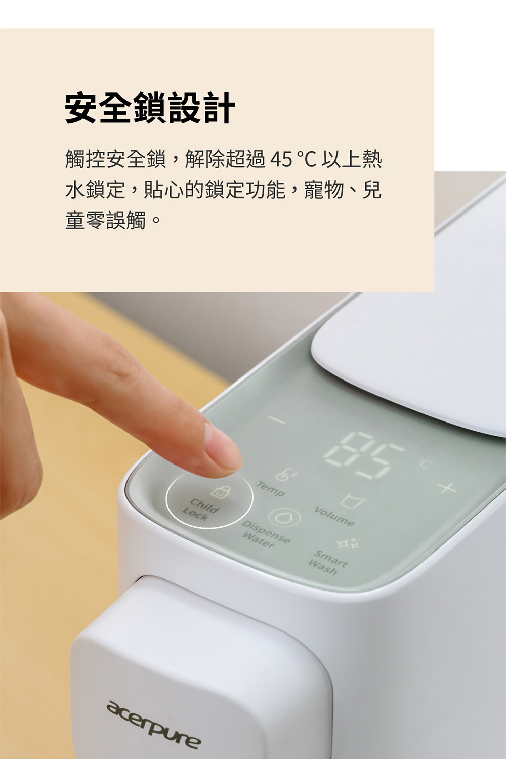 零誤觸,貼心安全鎖設計
