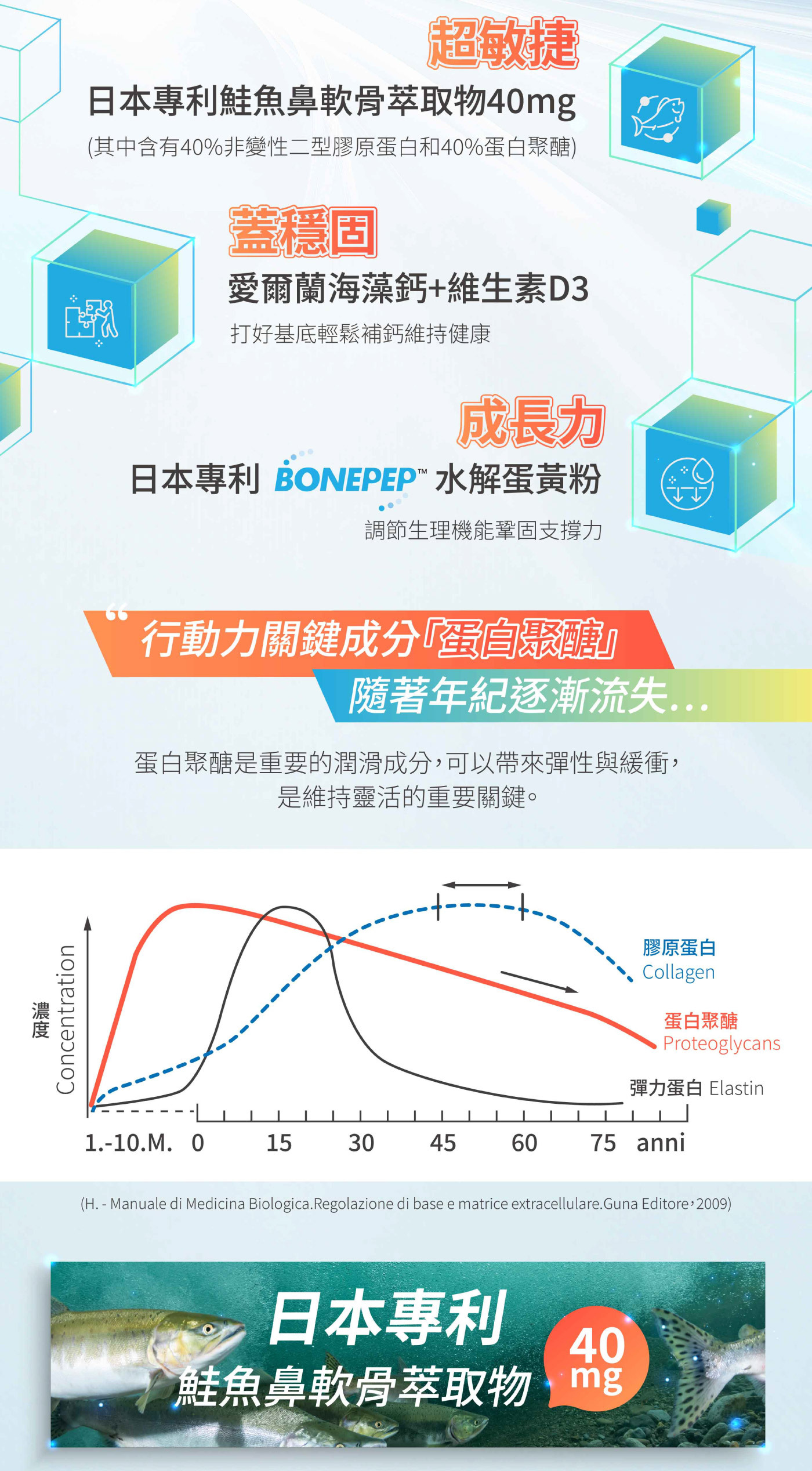 ✓日本專利鮭魚鼻軟骨萃取物40mg(含非變性二型膠原蛋白40%與蛋白聚醣40%)
